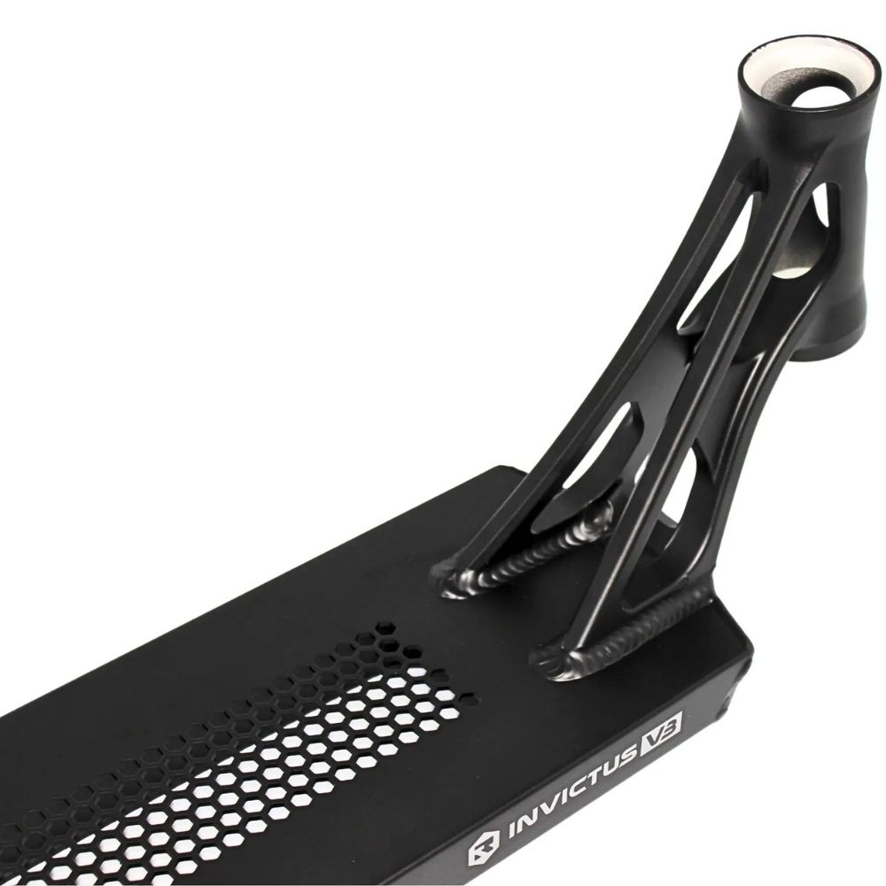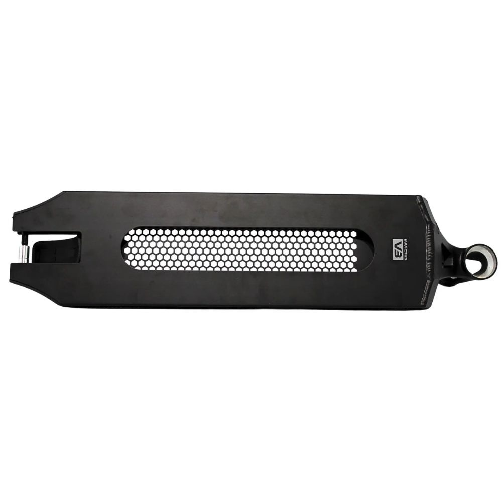 Ervaar ongeëvenaarde prestaties met het Root Invictus V3 Pro Scooter Deck van Root Industries Scooters. Dit deck uit één stuk is gemaakt van robuust aluminium en is ontworpen voor soepele ritten en precisie. Met een lengte van 52 cm en een breedte van 13,3 cm is het geschikt voor rijders van instapmodel tot pro. De geïntegreerde headset en box-cut dropout zorgen ervoor dat hij klaar is voor elk avontuur. De lichtgewicht maar duurzame constructie wordt aangevuld door compatibiliteit met meerdere wielmaten, waardoor het een topkeuze is voor serieuze stepliefhebbers.