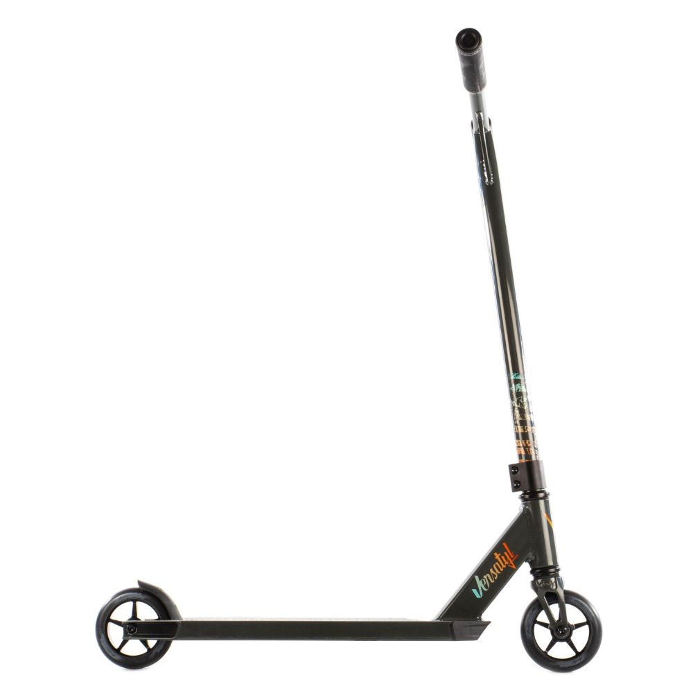 De Versatyl Cosmopolitan stuntstep complete is een lichte complete stuntstep voor beginners en jonge riders. De step heeft een 6061 T6 aluminium deck van 49 x 11,8 cm, IHC compressie, een 4130 chromoly Y-bar, 110 mm 88A wielen en een totaalgewicht van ongeveer 3,39 kg. Daardoor is dit model geschikt voor skatepark gebruik en het leren van basis tricks zoals bunnyhops, barspins en eerste tailwhips