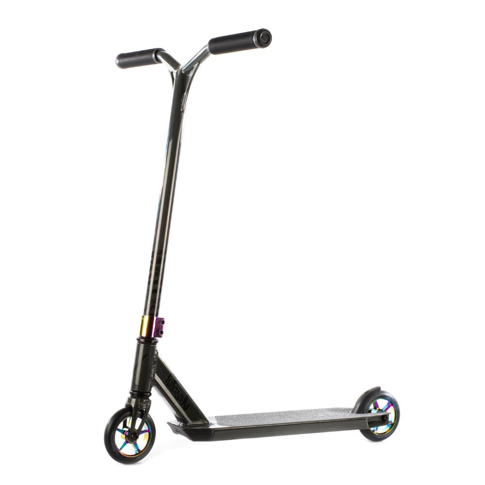 De combinatie van een 6061 T6 aluminium deck, 4130 chromoly bar en IHC compressie zorgt voor een stevige maar toegankelijke complete stuntstep. Dit is een fijne opbouw voor riders die een betrouwbare step zoeken voor skatepark sessies.
